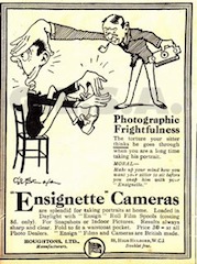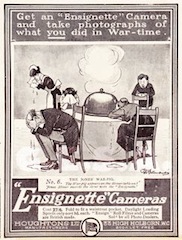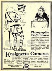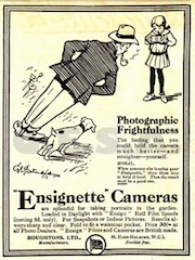 The Ensignette was one of the very characteristic camera types of Houghtons Ltd., London. The strut folding roll-film camera of Houghton's "Ensign – British made" brand was an ingenious construction, a real vest pocket item when folded. The Swedish engineer Magnus Neill had designed this first British all-metal camera of which many thousands were made. The camera was launched before Christmas 1909, and was distributed all over the world. The Ensignette was a milestone in popular photography,