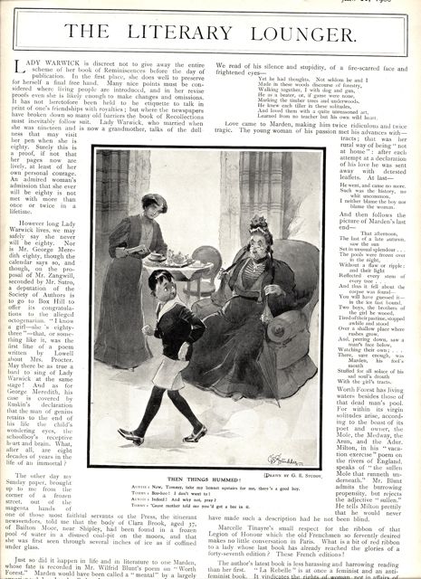 Auntie: Now, Tommy, take my bonnet upstairs for me, there's a good boy. Tommy: Boo-hoo! I don't want to! Auntie: Indeed! And why not, pray? Tommy: 'Cause Mother told me you'd got a bee in it.