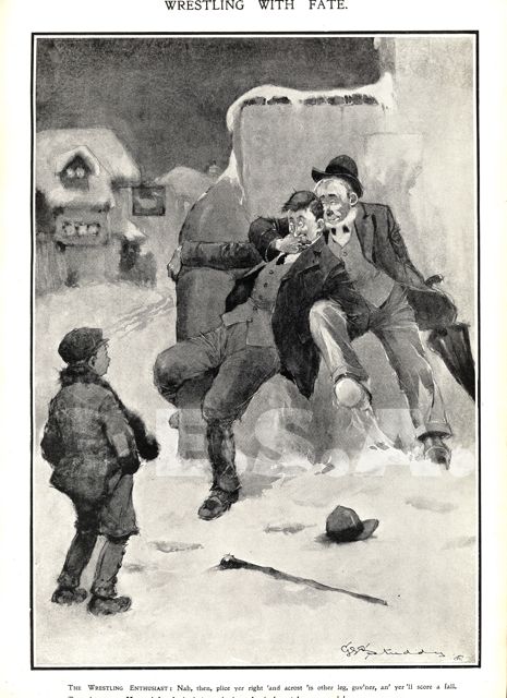 The Wrestling Enthusiast: Nah, then, plice yer right 'and acrost 'is other leg, guv'ner, an' yer'll score a fall. The Athlete: My goo' frien', thash jest whash we're both tryin' to prevensh!