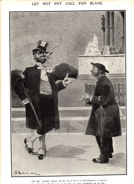 The Rev. Affable: Excuse me, Sir; one of the er - er - Pan-Anglicans, I presume? The Stranger: No, Sah; me rather considerable big pot, Sah.