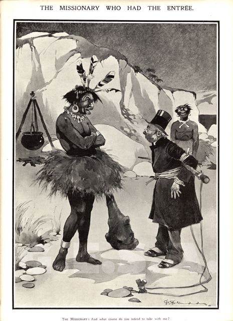 The Missionary: And what course do you intend to take with me? The Savage Chief: Oh, the ordinary one: you'll follow the fish.