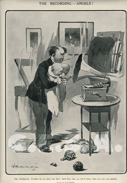 The Distracted Father: Go on, howl into that! And then, later on, you'll know what you owe your parents.