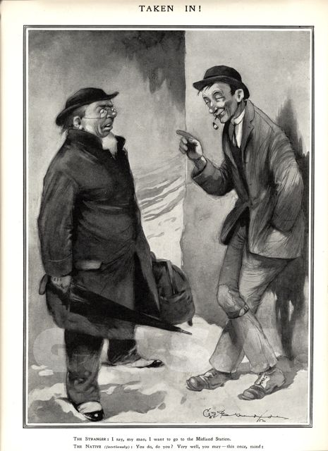 The Stranger: I say, my man, I want to go to the Midland Station. The Native (facetiously): You do, do you? Very well, you may - this once, mind; but don't you ever dare come and ask my permission again.