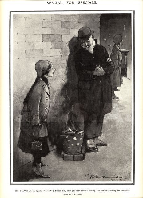 The Flapper (to the Special Constable): Please, Sir, have you seen anyone looking like someone looking for someone?