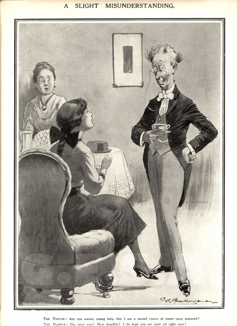 The Visitor: Are you aware, young lady, that I am a second cousin of yours – once removed? The Flapper: Oh, were you? How dreadful! I do hope you are quite all right now!