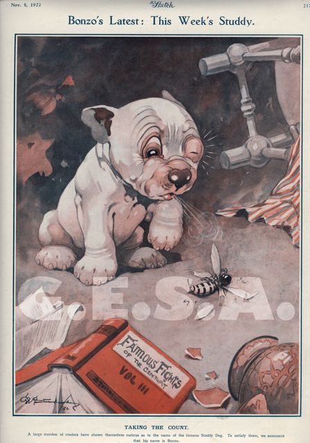 A large number of readers have shown themselves curious as to the name of the famous Studdy dog. To satisfy them we announce that his name is 'Bonzo'.
