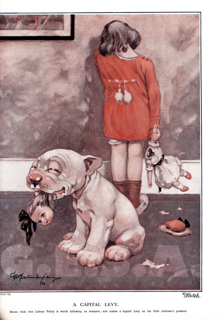 Bonzo finds that Labour Policy is worth following on occasion, and makes a Capital Levy on his little mistress's presents.