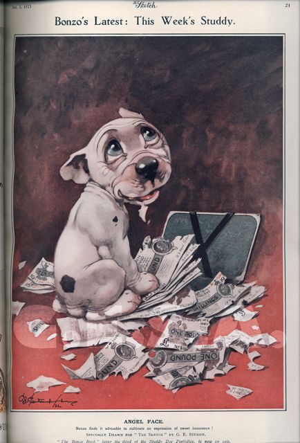 Bonzo finds it advisable to cultivate an expression of sweet innocence!