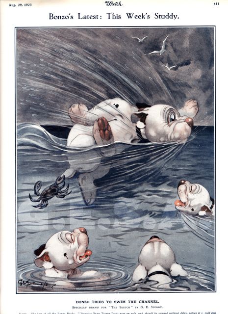 Bonzo tries to swim the channel.