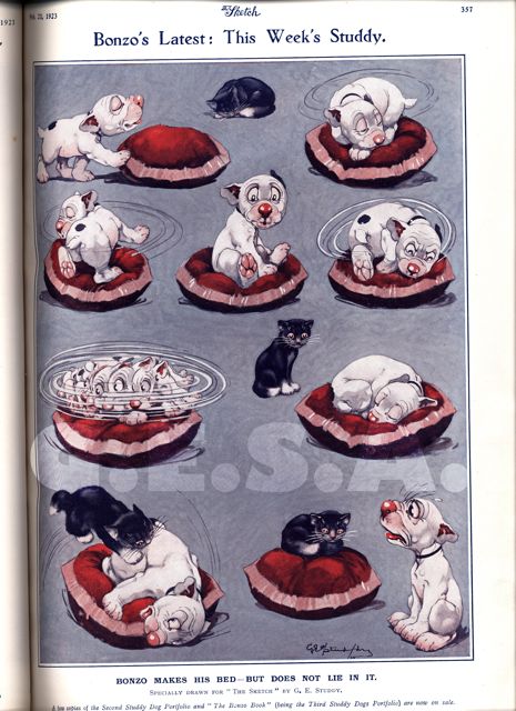 Bonzo makes his bed – but does not lie in it.