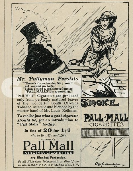 "I don't mind a soaking so long as 'Pall Malls' I'm a-smoking."