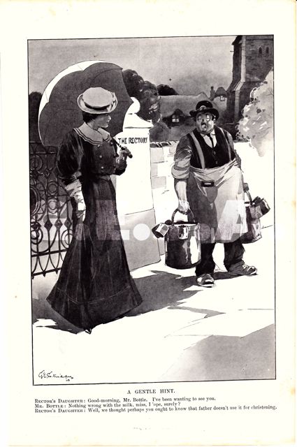 Mr. Bottle: Nothing wrong with the milk, miss, I 'ope,