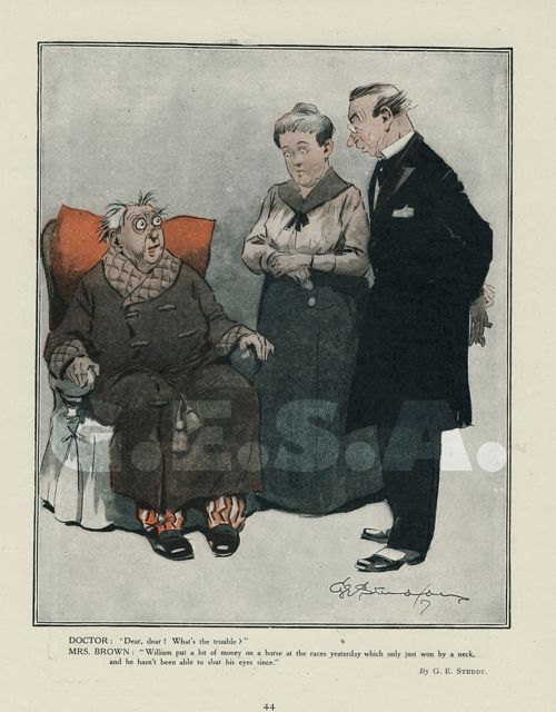 Mrs. Brown: "William put a lot of money on a horse at the races yesterday which only just won by a neck, and he hasn't been able to shut his eyes since."