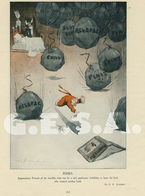 Impressionist Portrait of the horrible risks run by a sick gentleman, forbidden to leave his bed, who wanted another book.