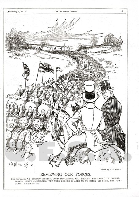 The Showman: "A goodly muster, Lord Devonport, and though they will, of course, suffer heavy casualties, yet they should enable us to carry on until the 1917 class is called up."