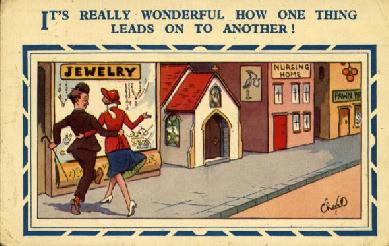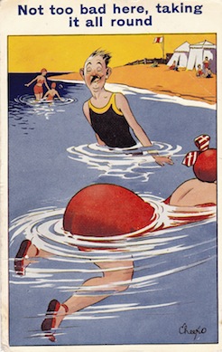 Some examples of the Humoresque 'seaside' postcards Studdy drew under the pseudonym "Cheero". There were approximately fifty in the series.