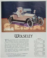on Morris designs. This lovely advert with Bonzo driving his own Wolsey car appeared in 1924.