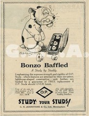 "unbreakable" O.P. Studs. Bonzo helped advertise