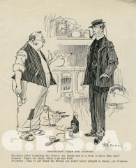 ![]() Punch, the magazine of humour and satire, ran from 1841 until its closure in 2002. A very British institution with an international reputation for its witty and irreverent take on the world, it published the work of some of the greatest comic writers (Thackeray, P G Wodehouse and P J O’Rourke among others) and gave us the cartoon as we know it today. Its political cartoons swayed governments while its social cartoons captured life in the 19th and 20th centuries. Studdy contributed to this magazine early in his career, then much later adverts featuring Bonzo appeared in it.