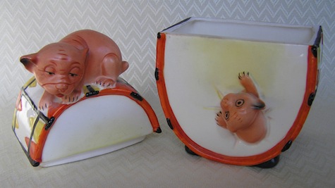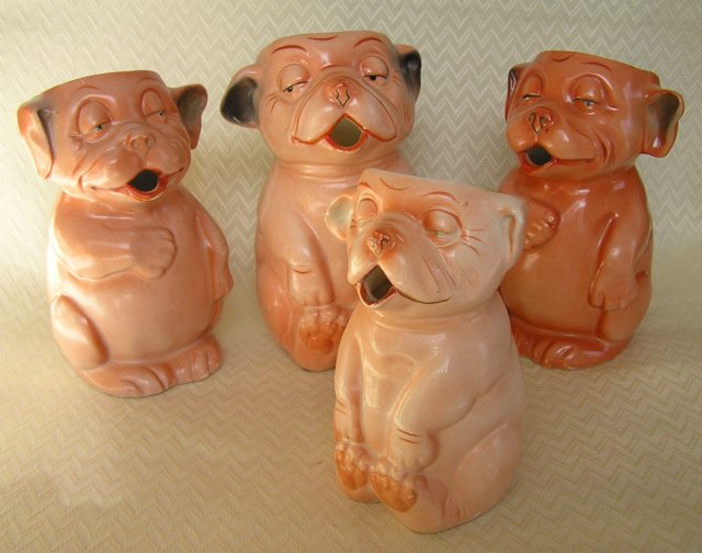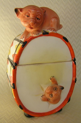 east Germany. Several of these factories were granted a license to produce 'official' Bonzo memorabilia, others simply jumped on the bandwagon & produced look-a-like items. Most of the German china has a mould number impressed into the items, & most also have the word 'Germany' impressed into them as well. Occasionally the word 'Foreign' appears stamped on the base of an item. Today, one must be aware that modern reproductions of some of these items exist, & are even being currently made. Here are just a few examples of the huge range of output from these factories. |