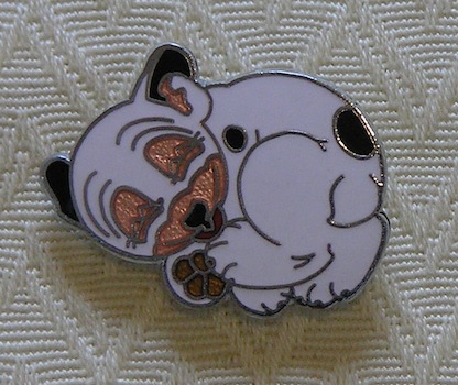 The modern enamel badge (pin) of Bonzo chasing his tail,