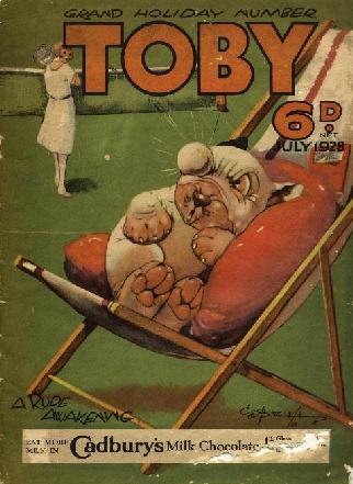The cover illustration of the childrens' magazine for July 1928, in which Bonzo strip cartoons featured. This picture originally appeared in The Sketch on 9th July 1924, titled "Deuce!" |