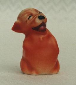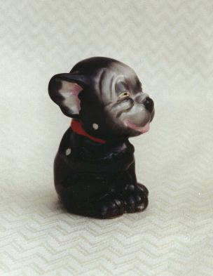 ![]() Described as black & red, this rarer of the two figurines seems to be a 'reverse colour' Bonzo, though occasionally Studdy drew him in a black 'Negro' style image. |