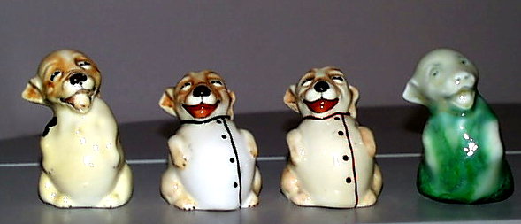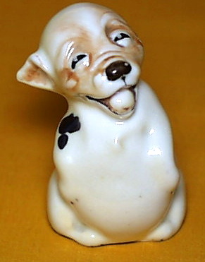 Bonzo was produced by Royal Doulton in bone china over the period of 1922 to 1946 (of course there were very few done during WWII). They were produced in 4 styles with different coloring and shapes. The Bonzos were designed by Charles Noke, the Art Director of Royal Doulton at the time, and it is believed that they were favorites of his.